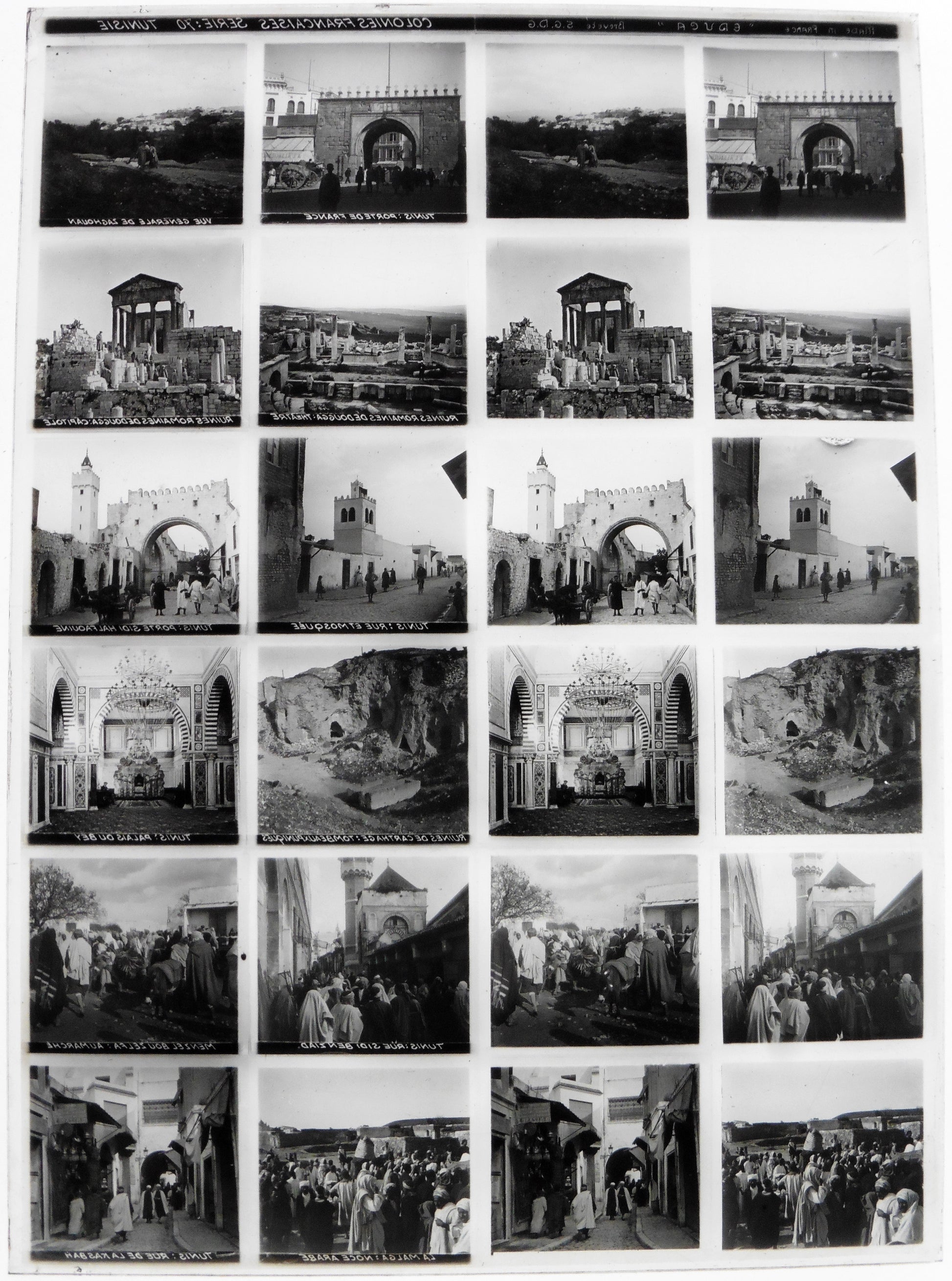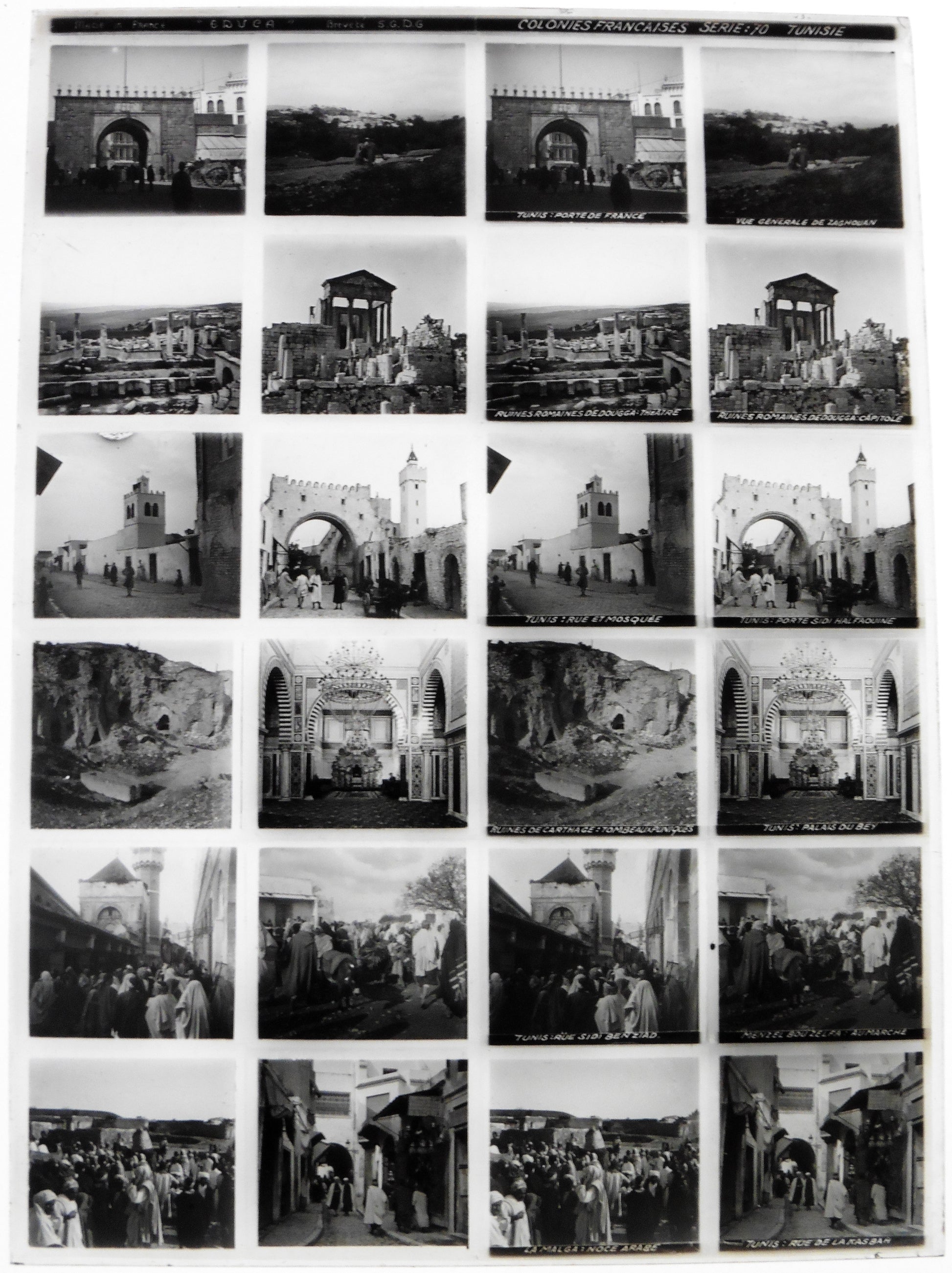 Educa.Colonnies Françaises. Série 70 "Tunisie" Stereo 12 Vues sur plaque de verre positive 13x18 pour borne stéréoscopique Educa.