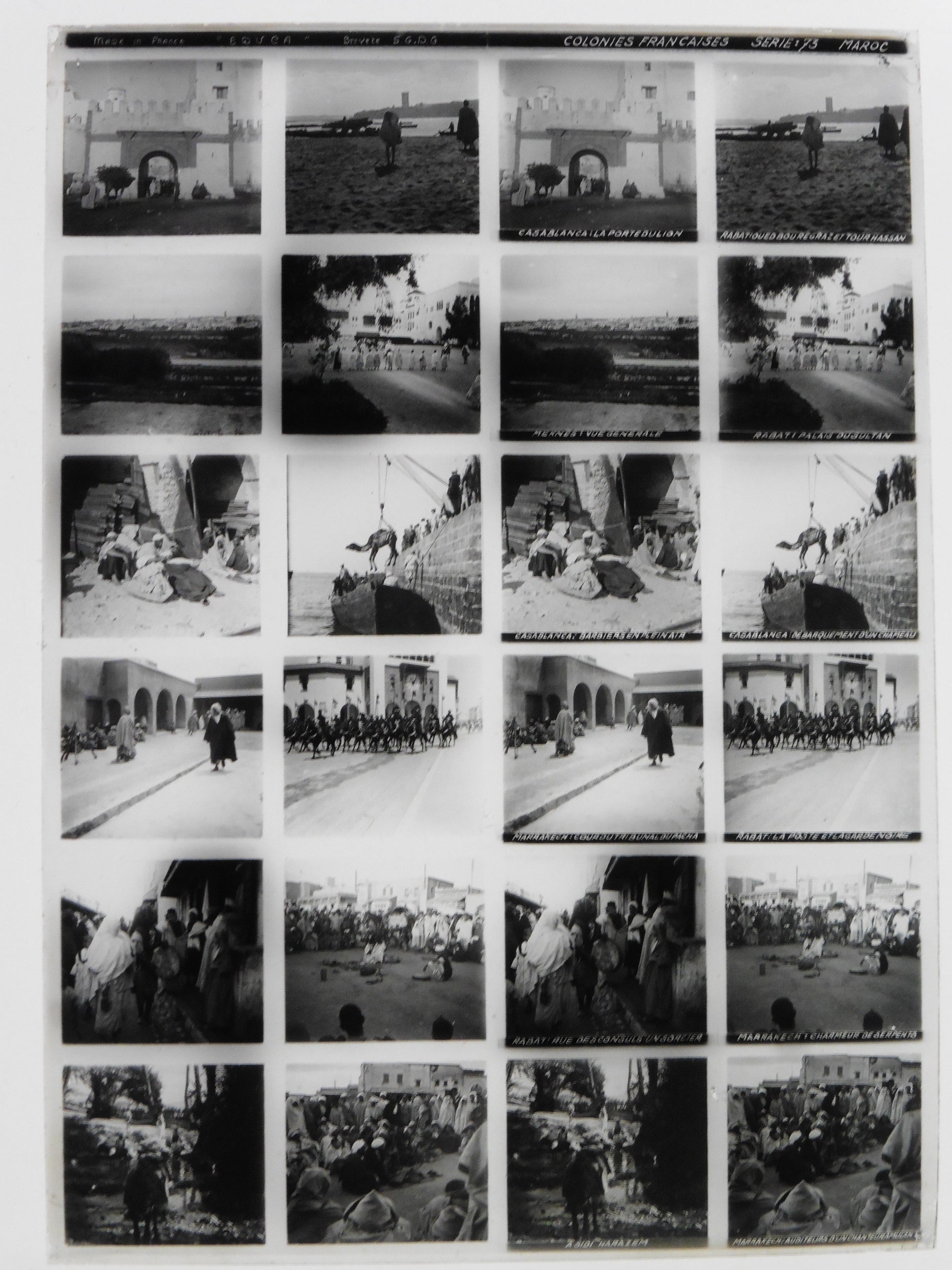 Educa.Colonnies Françaises. Série 73 "Maroc" Stereo 12 Vues sur plaque de verre positive 13x18 pour borne stéréoscopique Educa."