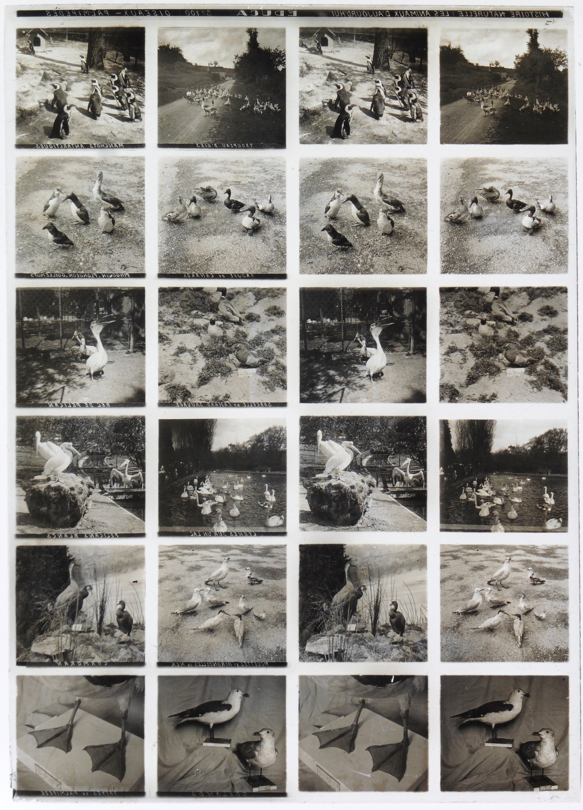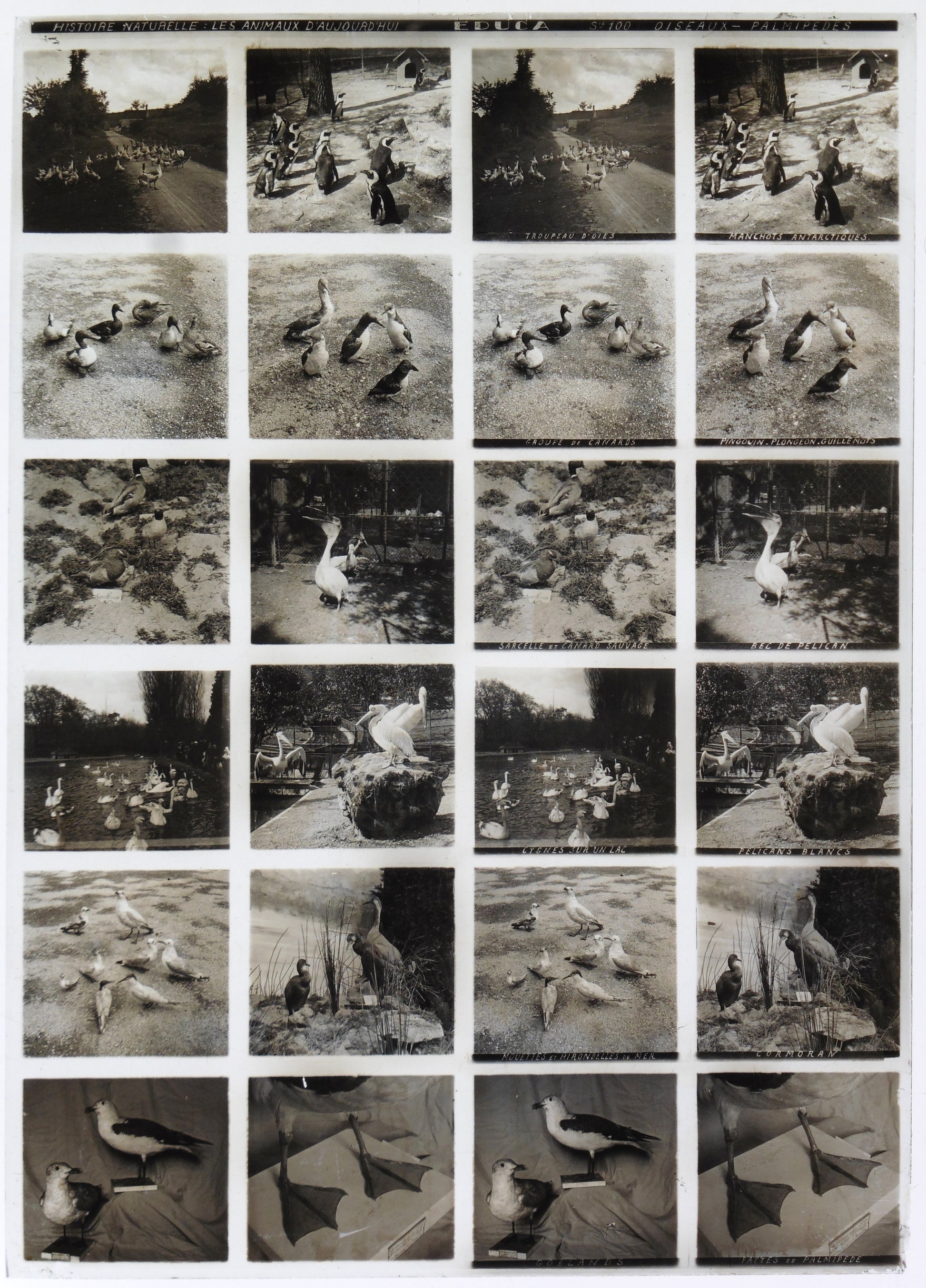 Rare plaque de verre positive 13x18cm pour visionneuse stéréoscopique Educa, présentant 12 vues originales consacrées aux oiseaux Palmipèdes. Document exceptionnel d'histoire naturelle datant des années 1900'.