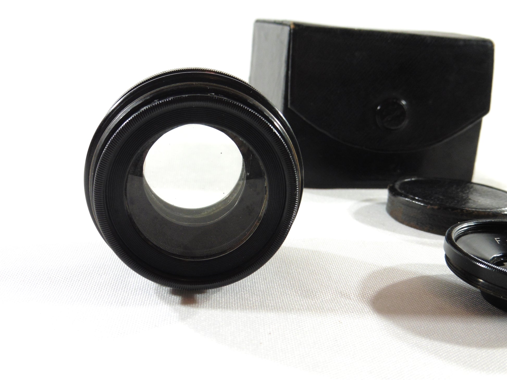 Les lentilles sont propres, sans rayures, quelques poussières, sans champignons ou autre défault.Diamètre pour bague de fixation 49mm, hauteur objectif 42mm.Avec son cache objectif.Poids total de la trousse=364grs.