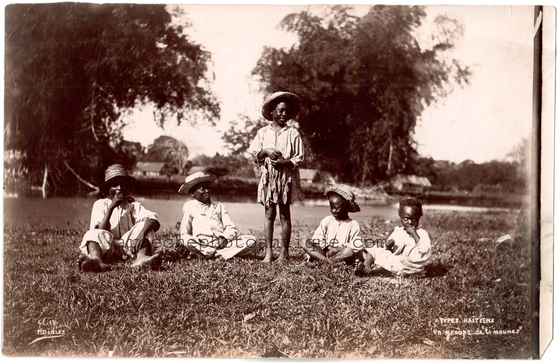 Haïti.Port au Prince.Type d'enfants Haïtiens"Un groupe de Ti mounes"Photographe F.Didier.Photo ancienne Citrate 11,3x 17,7cm. Année 1904.