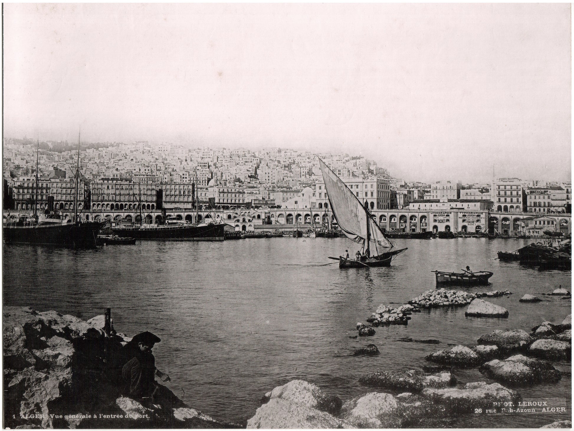 Leroux.Alger.Algérie.L'entrée du Port.Vue générale.Photo mécanique de format 21,4x27,9cm montée sur cartoline.